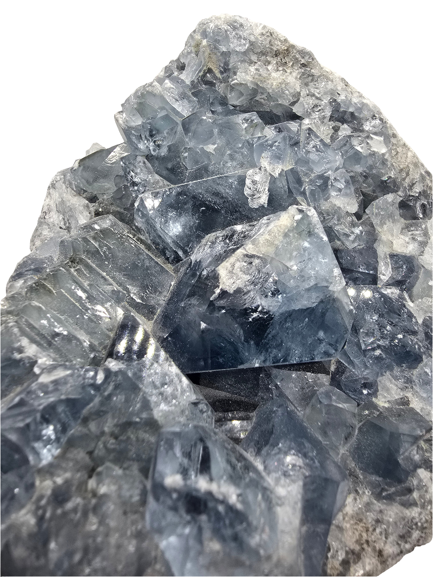 The name “celestite” comes from the Latin caelestis, meaning heavenly, due to its delicate sky-blue color that resembles a clear, peaceful sky.